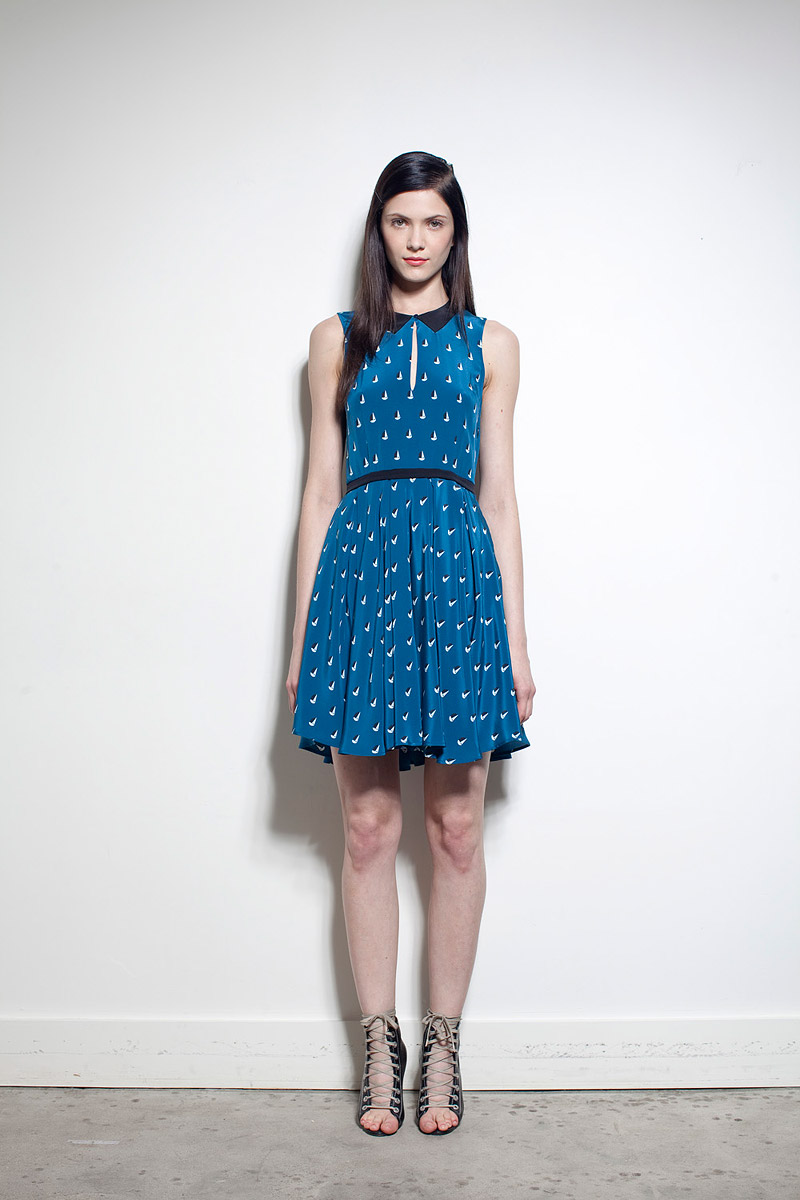 Yesterday the new BOY. by Band of Outsiders Resort 2013 Collection was shown and it looks great in a nautical prep theme. The color choices are fun and bright like they are known for I especially love the navy and aqua combination as well as the navy and green look as well! The prints are perfect with little boats and big hurricane-ish/ quotation marks really stand out from the rest.